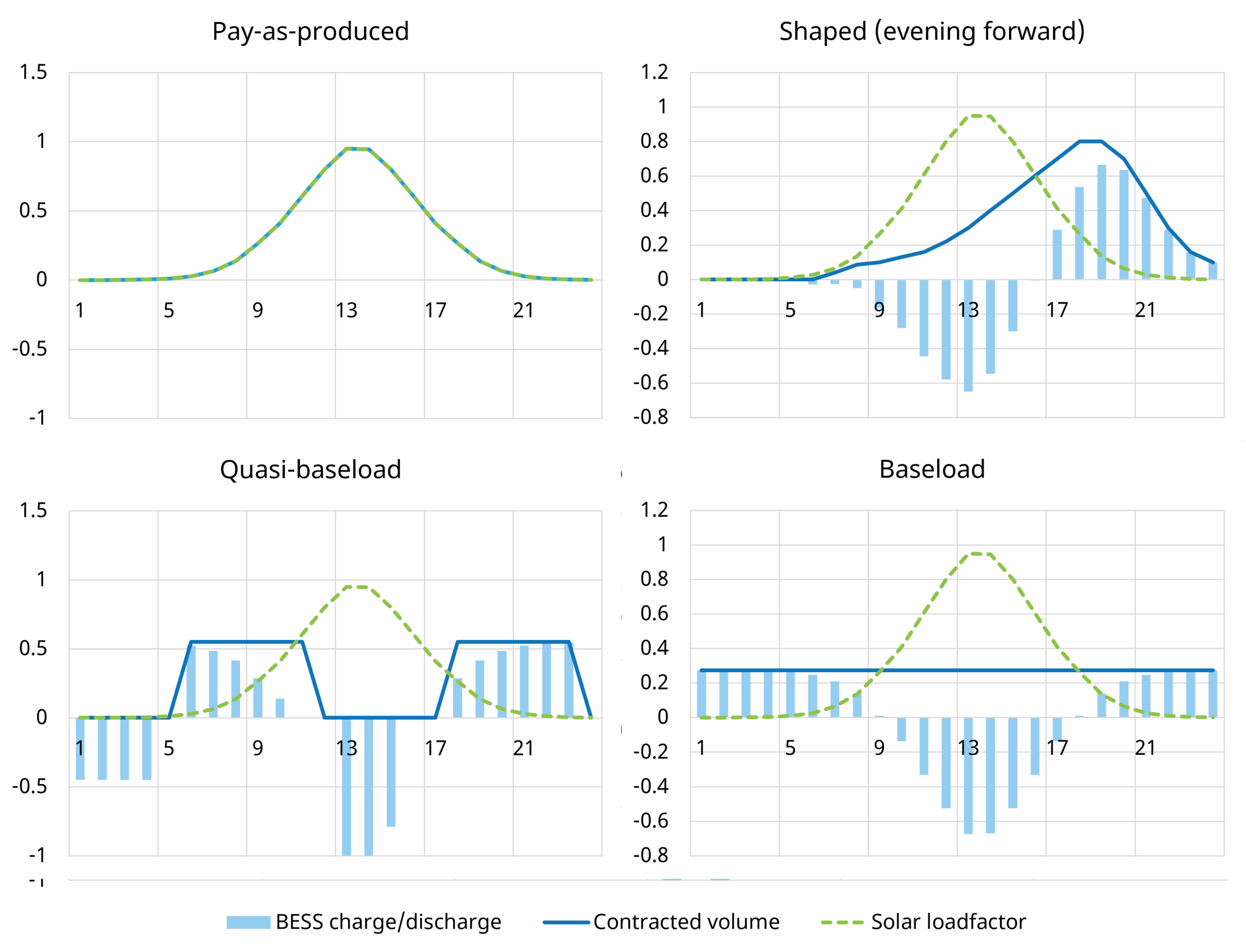 Importantly, hybrid PPAs allow for more diverse contract structures than traditional pay-as-produced solar PPAs. Storage flexibility enables shaped products, evening-delivery blocks, or quasi-baseload profiles, depending on the offtaker’s portfolio requirements.