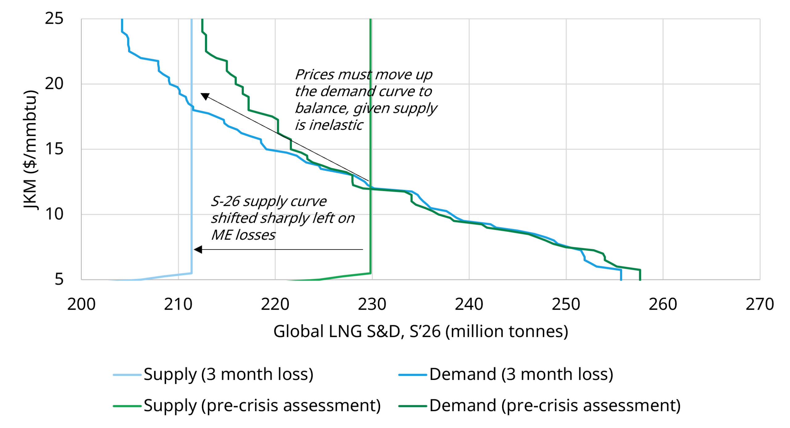 Chart 3: Impact of three month supply shock on Asian LNG demand curve (Summer 2026)