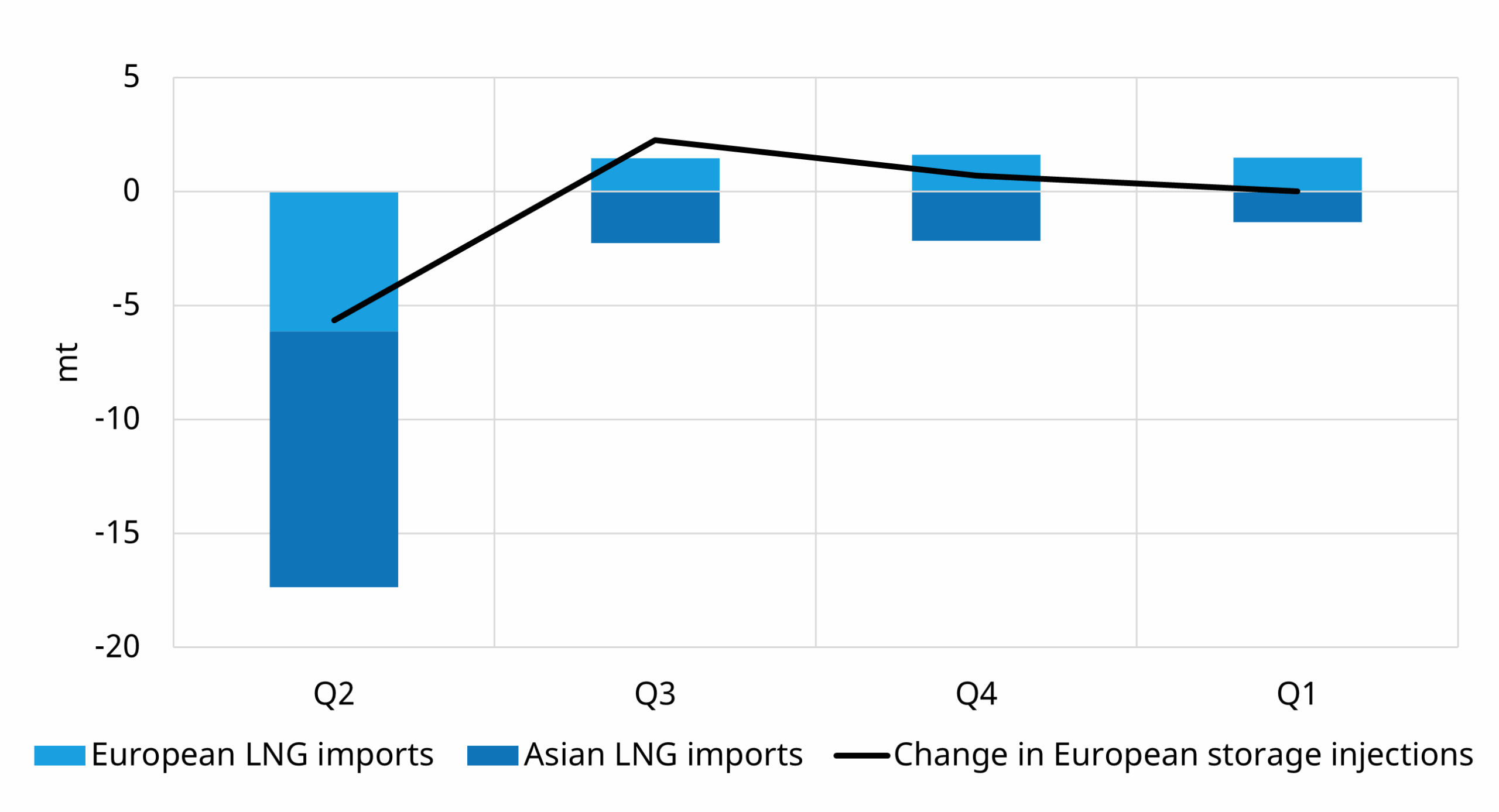This is partly compensated in Q3, as higher global gas prices attract more LNG into Europe and increase downstream coal to gas switching, supporting stronger injections.