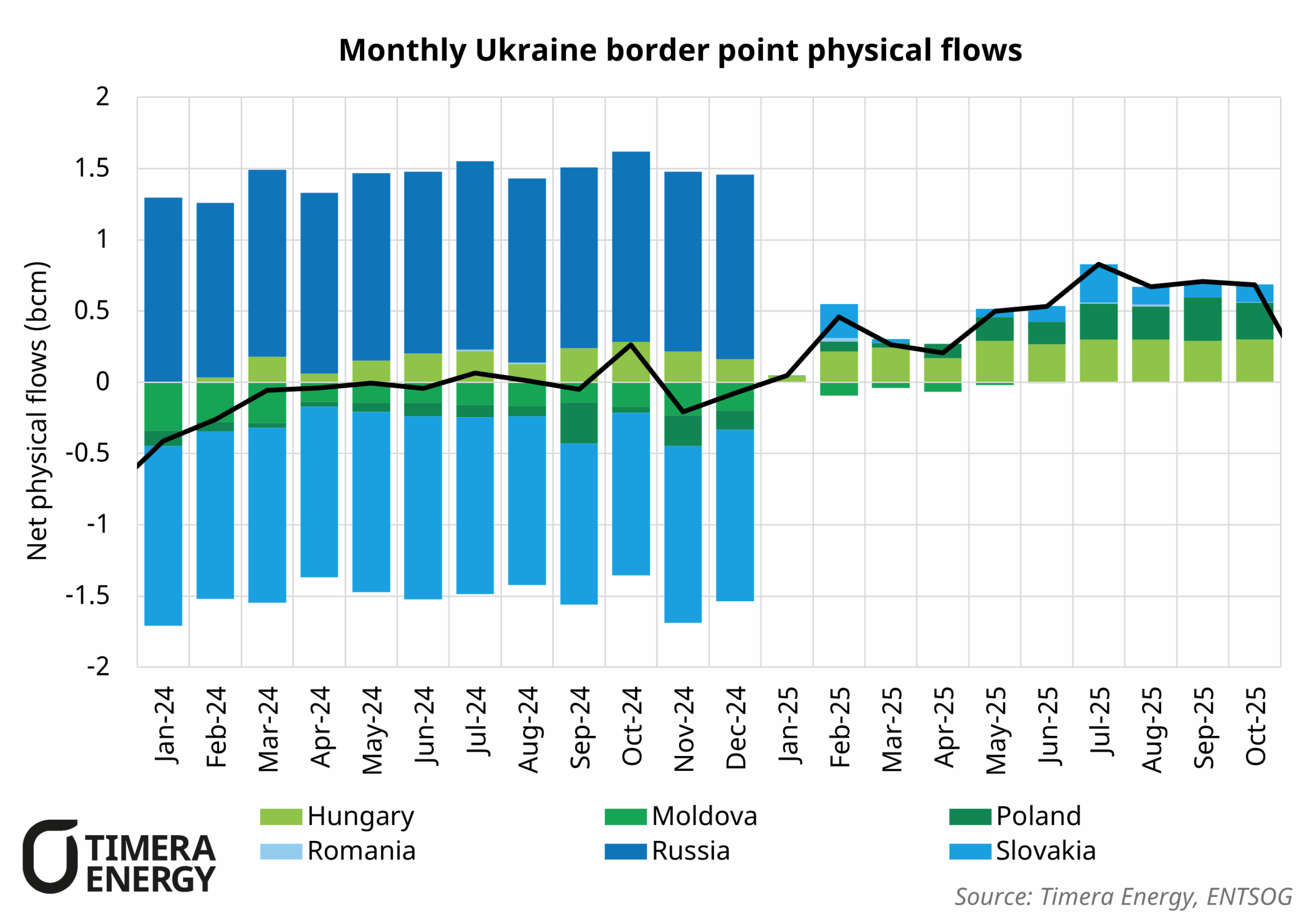 This shift is further reframing Ukraine’s role in the European gas system, following on from the cessation of Ukrainian transit of Russian pipe gas at the end of 2024.